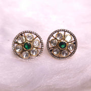 The Emerald Petal Studs bring together timeless beauty and traditional elegance. Featuring a floral design with a striking green center, these earrings add a refreshing charm to festive outfits and everyday ethnic looks alike.